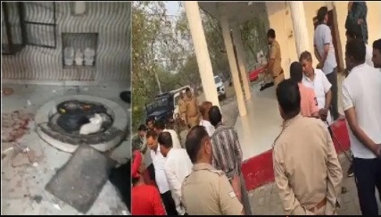 घटना की जानकारी जैसे ही गांव में फैली इसके बाद मंदिर परिसर में भीड़ इकट्ठा हो गई और जमकर हंगामा करना शुरू कर दिया। लोगों में व्याप्त रोष को देखते हुए तीन थानों की पुलिस फोर्स तैनात कर दी गई है। साथ ही पुलिस के सीनियर अधिकारी भी मौके पर पहुंचे हैं।