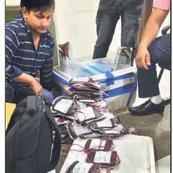 गुप्त सूचना के आधार पर यूपी की एसटीएफ ने नाकाबंदी के दौरान एक डाॅक्टर की कार की तलाशी ली तो उसमें 100 यूनिट खून रखा था। जब पुलिस ने कड़ाई से पूछताछ की तो मामला खून की तस्करी का निकला। आराेपी डाॅक्टर के माेबाइल से डिटेल निकलवाई गई ताे पता चला कि उसका जयपुर व मेवात में आना-जाना रहता था। डाॅक्टर के पास से 21 ब्लड बैंकाें के कागजात मिले हैं, जिनसे वह खून लाता था। जांच में पता चला कि ये दस्तावेज फर्जी हैं। इनकी आड़ में वह खून की तस्करी कर रहा था। आराेपी डाॅक्टर अभय प्रताप सिंह, जो सैफई मेडिकल कालेज में असिस्टेंट प्रोफेसर है। दूसरे आरोपी अभिषेक पाठक काे एटीएफ ने डाॅक्टर के फ्लैट से पकड़ा। इनसे 100 यूनिट पैक रेड ब्लड सेल्स मिलीं। पूछताछ में बताया कि डोनेट किया हुआ ब्लड 1200 रुपए में खरीदकर 4000 से 6000 हजार रुपए में बेचते थे। मांग ज्यादा हो तो एक यूनिट से 2 यूनिट खून तैयार कर ऊंचे दामों में बेच देते थे। इस मामले में यूपी एसटीएफ के डीएसपी अमित नागर का कहना है कि आरोपी नशा करने वाले लाेगाें से भी ब्लड डाेनेट करवा कर बिना जांच किए गिराेह काे बेच देता था। राजस्थान, पंजाब व हरियाणा में ऐसे गिराेह अब निशाने पर हैं।