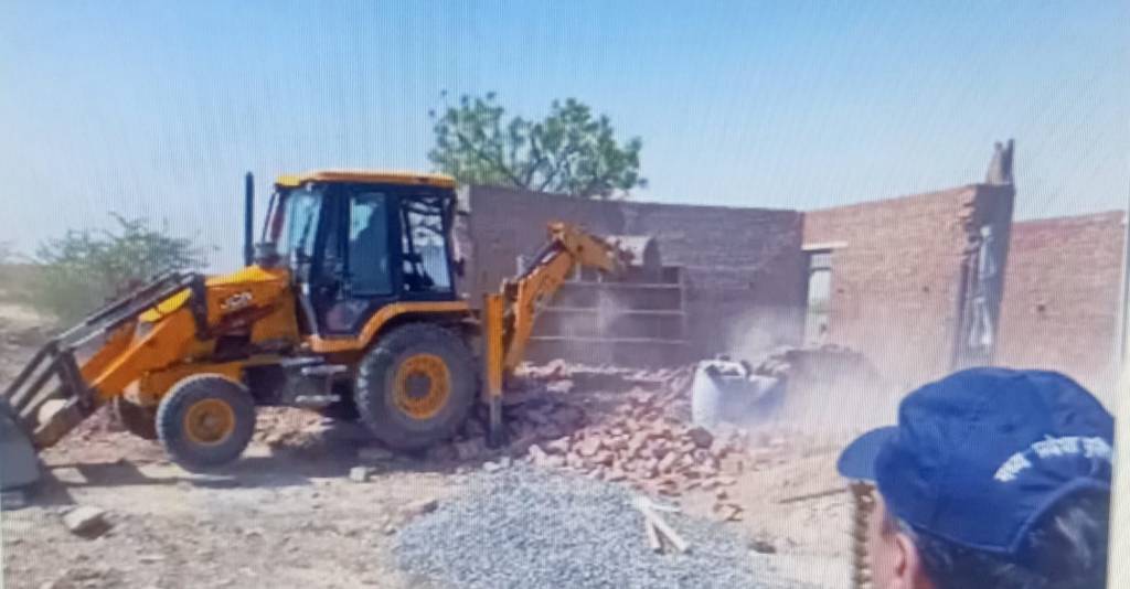 लोकमतसत्याग्रह/मुरैना । मुरैना जिले के रिठौरा थाना पुलिस ने कुछ दिन पूर्व बस्तपुर गांव के धर्मवीर पुत्र कल्याण सिंह गुर्जर को शराब के मामले में गिरफ्तार किया था। जो केमिकल से नकली शराब (liquor mafia) बनाकर उसे गांवों में खपाने का काम करता है। बता दे कि 17 फरवरी को रिठौरा थाना पुलिस ने बस्तपुर के जंगल में चल रही अवैध शराब बनाने की फैक्ट्री पकड़ी।आपको बता दें कि फैक्टरी सुनसान जंगल में चल रही थी। शराब फैक्ट्री से पुलिस ने 220 लीटर ओपी केमिकल, 2800 खाली बोलतें, ढक्कर, व रेपर जब्त किए थे। चार लाख रुपये कीमत की इस ओपी से नकली शराब बनाकर, नकली बोतलाें में पैक करने के बाद बेची जाती है। इस मामले में पुलिस ने धर्मवीर गुर्जर के अलावा, मिंटू गुर्जर निवासी बड़वारी व किस्सो नाथ गुर्जर निवासी बस्तपुर के खिलाफ आबकारी एक्ट का मामला दर्ज किया था।पुलिस ने किस्सो और मिंटू गुर्जर को तो मौके से ही पकड़ लिया था, लेकिन मास्टरमाइंड धर्मवीर गुर्जर फरार हाे गया, जिस पर 5000 रुपये का इनाम भी एसपी आशुतोष बागरी ने घोषित किया है। धर्मवीर गुर्जर के खिलाफ पहले से दो आबकारी एक्ट के मामले दर्ज हैं, उसकी खोज में जुटी पुलिस को पता लगा कि अवैध शराब के पैसों से गांव में मकान बनवा रहा है। इस मकान निर्माण के लिए धर्मवीर गुर्जर ने ग्राम पंचायत से भी भवन निर्माण की अनुमति नहीं ली। इन आरोपों के चलते सोमवार को राजस्व व पुलिस की टीम ने संयुक्त कार्रवाई करते हुए धर्मवीर गुर्जर के निर्माणाधीन मकान को बुलडोजर से एक घंटे के भीतर ही जमींदोज कर दिया। इस मौके पर एसडीएम शिवलाल शाक्य, नायब तहसीलदार , राजस्व विभाग के सहयोग से अपराधी धर्मवीर गुर्जर के अवैध मकान को जेसीबी से तोड़ कर ध्वस्त कर दिया है।