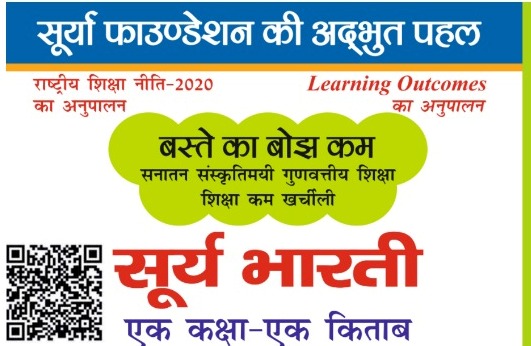 सूर्या फाउंडेशन से मिली जानकारी के अनुसार कक्षा एक से पांच तक के बच्चों के लिए सभी विषयों को मिलाकर एक किताब सूर्य भारती बनाई गई है। उन्होंने इस परियोजना को ‘एक कक्षा-एक किताब’ नाम दिया है। इसका उद्देश्य है बस्ते का बोझ करना, कम खर्चीली किताबें उपलब्ध कराना, बच्चों में देशभक्ति और भारतीय संस्कृति का भाव जगाना है। इस किताब में बाल केंद्रित और क्रियाकलाप आधारित शिक्षा को भी समाहित किया गया है।