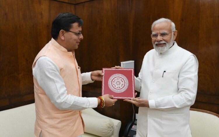मुख्यमंत्री पुष्कर सिंह धामी ने प्रधानमंत्री श्री नरेंद्र मोदी से नई दिल्ली में शिष्टाचार भेंट की। उत्तराखण्ड के विकास में प्रधानमंत्री के मार्गदर्शन और केंद्र सरकार से मिल रहे सहयोग पर आभार व्यक्त करते हुए मुख्यमंत्री ने प्रधानमंत्री को राज्य में संचालित विकास कार्यों के बारे में अवगत कराया।मुख्यमंत्री धामी ने प्रधानमंत्री से उत्तराखण्ड राज्य के सीमित वित्तीय संसाधनों को देखते हुए जी.एस.टी. प्रतिकर अवधि को बढ़ाए जाने का भी अनुरोध किया। उन्होंने उत्तराखण्ड में नवीनतम तकनीक व वैज्ञानिक शोध को बढ़ावा देने के लिये भारतीय विज्ञान शिक्षा एवं अनुसंधान संस्थान की स्थापना और फार्मास्यूटिकल उद्योग के विकास के लिये नेशनल इंस्टीट्यूट ऑफ फार्मास्यूटिकल एजुकेशन एण्ड रिसर्च की स्थापना का आग्रह किया।मुख्यमंत्री धामी ने उत्तराखण्ड में बागवानी की अपार सम्भावनाओं को देखते हुए प्रधानमंत्री से कश्मीर तर्ज पर 2000 करोड़ का बागवानी पैकेज दिये जाने का अनुरोध किया। टीएचडीसी इण्डिया लिमिटेड की अंशधारिता में उत्तर प्रदेश के अंश का उत्तराखण्ड को हस्तांतरित करने के लिये माननीय न्यायालय से बाहर सौहार्दपूर्ण समाधान के लिये केंद्र सरकार की विशेष पहल का आग्रह किया।