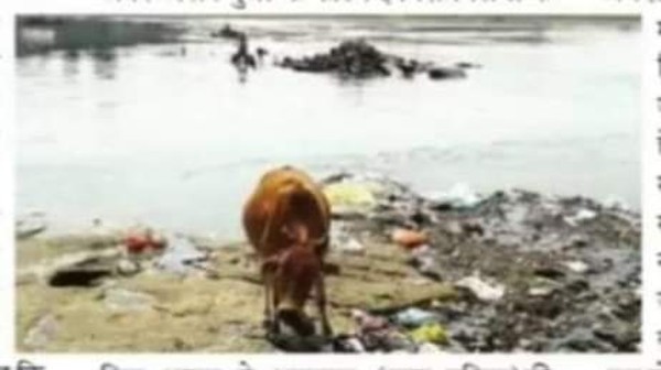 बीच धार में तन गईं झुग्गियां, नदी किनारे शौच