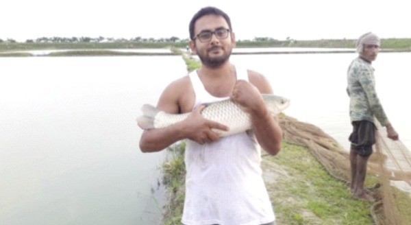 असम के अनूप सरमा ने नौकरी छोड़कर मत्स्य पालन करना शुरू किया।