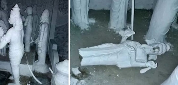 कर्नाटक के हासन जिले में स्थित एक प्राचीन मंदिर में कल कुछ अज्ञात लोगों द्वारा देव प्रतिमाएं तोड़े जाने की घटना के बाद से पूरे क्षेत्र में तनाव पैदा हो गया है। हासन जिले में अरसिकेरे तालुका में इस मंदिर में उपद्रवियों ने मंदिर में उन प्रतिमाओं को ध्वस्त किया है जिनकी जल्दी ही प्राण प्रतिष्ठा होने वाली थी।पता चला है कि तोड़फोड़ की ये घटना मालेकल्लू तिरुपति मंदिर के प्रदर्शनी कक्ष में रखी प्रतिमाओं के साथ की गई है। इस 300 साल पुराने पवित्र स्थान को चिक्का अर्थात ‘लघु तिरुपति’ के नाम से जाना जाता है। ये मंदिर एक पहाड़ी के ऊपर अरसिकेरे शहर से दो किलोमीटर दूर स्थित है।पुलिस ने बताया है कि कम से कम चार बदमाशों ने देव मूर्तियों को तोड़ा है। जैसा पहले बताया, इन प्रतिमाओं को जल्दी ही मंदिर में दर्शन के लिए स्थापित करने की तैयारियां चल रही थीं।इतना ही नहीं, पुलिस के अनुसार, एक दिन पहले, मंदिर परिसर में कुछ बदमाशों ने खूब अफरातफरी मचाई थी। उनको ऐसा करने से रोकने की कोशिश की गई, लेकिन इसके बावजूद उन्होंने न सिर्फ मंदिर परिसर में सिगरेट पी, बल्कि वहां काम कर रहे मजदूरों को डराया-धमकाया। काम में जुटे मजदूर भी डर कर भाग खड़े हुए। इसके बाद वे उस स्थान पर गए जहां ये नई बनी प्रतिमाएं रखी थींं। इसके बाद, प्रतिमाओं को पत्थरों और सरियों से तोड़ना शुरू कर दिया। कुछ प्रतिमाएं तो अभी आधी ही बनी थीं।घटना की गंभीरता को देखते हुए जिले के पुलिस अधीक्षक आर. श्रीनिवास गौड़ा तथा अन्य वरिष्ठ अधिकारी उस मंदिर पर पहुंचे और पूरा मुआयना किया। इस बीच खोजी कुत्तों और उंगलियों के निशान लेने वालों को बुलाया गया।विशेषज्ञों ने घटनास्थल से कुछ सुराग तो इकट्ठे किए हैं, लेकिन अभी तक कोई अपराधी पकड़ में नहीं आया है। ये समाचार पता चलते ही, बड़ी संख्या में श्रद्धालु मंदिर पहुंच गए और दोषियों को शीघ्र पकड़ने की मांग करने लगे। मंदिर परिसर में जमा लोगों के चेहरों पर आक्रोश साफ पढ़ा जा सकता था। फिलहाल पुलिस ने क्षेत्र में सुरक्षा और निगरानी बढ़ा दी है।