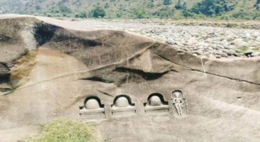 जम्मू स्थित राजौरी के उज्जान कस्सियां में बहने वाली दरहाली नदी का एक हिस्सा इस समय सूख गया। इस दौरान नदी का पानी कम होने पर उसमें एक चट्टान की शिला निकली जिस पर तीन शिवलिंग हैं।