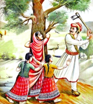 विश्नोई समाज की कहावत है-‘सर साठे रूख रहे, तो भी सस्तों जांण’ यानी अगर सिर कटने से वृक्ष बच रहा हो तो ये सस्ता सौदा है। 1730 में जोधपुर जिला मुख्यालय से 25 किलोमीटर दूर स्थित गांव खेजडली में खेजड़ी के बहुत पेड़ थे। खेजड़ी को अन्य प्रदेशों में शमी के नाम से जाना जाता है। जोधपुर के महाराजा अजीत सिंह को महल बनाने के काम में मजबूत लकड़ी की आवश्यकता पड़ी। उनके मंत्री खेजड़ी के पेड़ काटने खेड़जली गांव गए। वहां अमृता विश्नोई नामक महिला ने विरोध किया। मंत्री नहीं माने, उन्होंने सैनिकों को कुल्हाड़ी चलाने का आदेश दिया। अमृता पेड़ से लिपट गर्इं। कुल्हाड़ी के वार से पेड़ के साथ अमृता का सिर भी कट के गिर पड़ा। तब उनकी दोनों बेटियों ने मोर्चा संभाला। उनके भी सिर कटे। तब विश्नोई समाज के पुरुष आगे आए। उनके भी सिर कटे। एक-एक कर 363 लोगों ने पेड़ों को बचाने के लिए सिर कटा दिए। बात राजा तक पहुंची। उन्होंने खेजड़ी के वृक्षों को काटने पर हमेशा के लिए प्रतिबंध लगा दिया। अंग्रेजों ने भी इस प्रतिबंध को बरकरार रखा।स्वतंत्रता के पश्चात् भारत सरकार ने भी इस आदेश को बनाए रखा। 1983 में राजस्थान सरकार ने खेजड़ी को राजस्थान का राजवृक्ष घोषित किया। इस घटना का उल्लेख लेखक बनवारी लाल साहू द्वारा लिखित पुस्तक ‘पर्यावरण संरक्षण एवं खेजडली का बलिदान’ पुस्तक में किया गया है। इस घटना की याद में आज भी खेजडली में भाद्रपद महीने के शुक्ल पक्ष की दशमी तिथि को वृक्ष मेला लगता है। बाद में 1970 के दशक में वर्तमान उत्तराखंड में पेड़ों को बचाने के लिए इसी तर्ज पर चिपको आंदोलन चला।