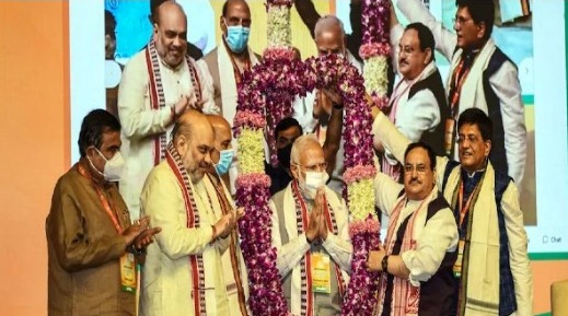 बीजेपी की दो दिन की राष्ट्रीय कार्यकारिणी की बैठक शनिवार से तेलंगाना की राजधानी हैदराबाद में होगी. इंटरनेशनल कन्वेंशन सेंटर में होने वाले इस अधिवेशन के लिए नेताओं का आगमन शुरू हो गया है। बीजेपी अध्यक्ष के स्वागत के लिए मेगा रोडशो की योजना बनाई गई है. ये रोड शो शमसाबाद में एयरपोर्ट से लेकर करीब एक किलोमीटर तक होगा। इस सम्मेलन में प्रधानमंत्री नरेंद्र मोदी भी शामिल होंगे। वह 2 जुलाई को हैदराबाद पहुंचेंगे और 4 जुलाई की सुबह वापस लौटेंगे। प्रधानमंत्री के अलावा भाजपा शासित सभी राज्यों के मुख्यमंत्री, उपमुख्यमंत्री, केंद्रीय मंत्री और राष्ट्रीय स्तर के नेता भी मौजूद रहेंगे। पीएम 3 जुलाई को परेड ग्राउंड में रैली को भी संबोधित करेंगे. अधिवेशन के लिए हैदराबाद शहर को में जगह जगह भाजपा ने होर्डिंग बैनर लगवाए हैं। पीएम मोदी, केंद्रीय गृह मंत्री अमित शाह और बीजेपी अध्यक्ष नड्डा जैसे बड़े नेताओं के कटआउट लगाए गए हैं। पूरा शहर एक तरह से केसरिया रंग में रंगा नजर आ रहा है।