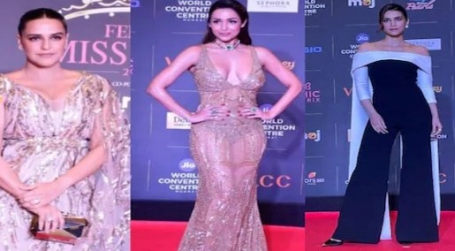 वहीं अभिनेत्री नेहा धूपिया भी मिस इंडिया फिनाले में शिरकत करने पहुंची थीं। इस दौरान वह भी गोल्डन शिमरी कलर के गिल्टरी गाउन में नजर आईं। एक्ट्रेस ने बोल्डनेस के साथ अपने व्हाइट हेयर्स को भी खूबसूरती से फ्लॉन्ट किया। एक्ट्रेस कृति सेनन ने हल्के नीले रंग के ऑफ-शॉल्डर केप के साथ काले रंग के जंपसूट में अपने लुक को स्टाइल किया। उन्होंने बालों को बन किया हुआ था। उनका हल्का मेकअप उनकी खूबसूरती में चार चांद लगा रहा था।