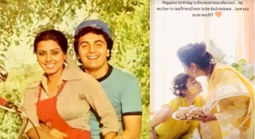 आलिया भट्ट ने सास नीतू कपूर को सोशल मीडिया के जरिए विश किया। आलिया ने इंस्टा स्टोरी पोस्ट करते हुए अपनी हल्दी की एक फोटो शेयर की। इसी के साथ आलिया ने अपनी सासू मां को स्वीट सा बर्थडे मैसेज भी लिखा। फोटो शेयर कर आलिया ने होने वाली दादी मां (नीतू) को बर्थडे की विशेज देते हुए लिखा- सबसे खूबसूरत शख्स को जन्मदिन की ढेर सारी बधाई। मेरी सासू मां, दोस्त और जल्दी ही बनने वाली दादी मां भी.. मैं आपसे बहुत प्यार करती हूं। वहीं इस फोटो को नीतू ने अपनी प्रोफाइल पर शेयर करते हुए लिखा, ‘लव यू सो मच…।