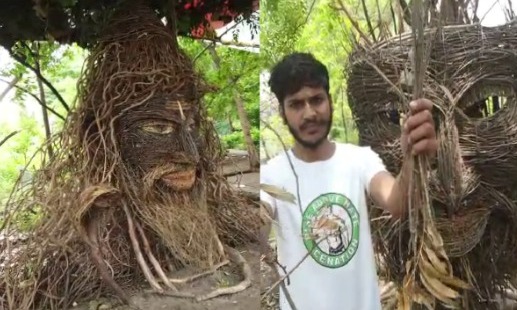 लोकमतसत्याग्रह/सिवनी।आंधी तूफान में पेड़ों से गिरी टहनियों की मदद से सिवनी के एक कलाकार ने भगवान महाकाल की ऐसी कलाकृति को आकार दिया है। जो सावन के महीने में शिवभक्तों को बहुत लुभा रही है। कलाकार ने इस कलाकृति में चंदन, पीपल और बरगद की टहनियों और बेलों का उपयोग किया है। बजोड़ कला की इस कारीगरी को सोशल मीडिया में जहां काफी लोकप्रियता मिल रही है वहीं सिवनी के मठ मंदिर प्रांगण में इसे देखने लोग भी पहुंच रहे हैं।
