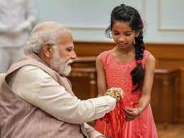 लोकमतसत्याग्रह/प्रधानमंत्री कार्यालय में राखी बंधवाते समय पीएम मोदी ने बच्चियों से बात की और उनका हालचाल जाना। देशभर में रक्षाबंधन का त्यौहार मनाया जा रहा है बहन अपने भाइयों को राखी बांध रही है इस पर्व के अवसर पर प्रधानमंत्री श्री नरेंद्र मोदी ने अपने आवास पर बच्चियों के साथ रक्षाबंधन मनाया उन्होंने प्रधान मंत्री कार्यालय मैं काम करने वाले सफाई कर्मियों, चपरासी, माली, ड्राइवर की बेटियों से राखी बंधवाई। इसके साथ ही प्रधानमंत्री ने देशवासियों को रक्षाबंधन की बधाई दी है।प्रधानमंत्री कार्यालय में राखी बंधवाते समय पीएम मोदी ने बच्चियों से बात की और उनका हालचाल पूछा पीएम ने बच्चों से राखी बंधवाते हुए फोटो भी शेयर की है। वहीं, प्रधानमंत्री को राखी बांधकर बच्चियों भी खुश नजर आईं। इधर राष्ट्रपति भवन में भी रक्षाबंधन मनाया गया। कई संगठनों के लोग और स्कूल के बच्चों ने आकर राष्ट्रपति श्री द्रोपदी मुर्मू को राखी बांधी है। राष्ट्रपति श्री द्रोपदी मुर्मू ने देशवासियों को पर्व की बधाई दी है। उन्होंने ट्वीट किया, भाई-बहन के बीच अटूट बंधन, स्नेह और विश्वास के प्रतीक, रक्षाबंधन के उल्लास पूर्ण अवसर पर, मैं सभी देशवासियों को बधाई और शुभकामनाएं देती हूं, मेरी कामना है कि यह पर्व, हमारे समाजमें मेल-जोल व सौहार्द को प्रोत्साहित करें और महिलाओं के प्रति सम्मान में वृद्धि करें।