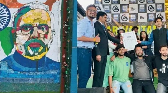 आजादी के अमृत महोतत्सव पर्व पर इंदौर के आर्ट स्टूडियो ने प्रधानमंत्री नरेंद्र मोदी का ऐतिहासिक पोट्रेट बनाया। 6 हजार वर्ग फुट का ये पोट्रेट 6 लाख उपयोग हुए वॉटर बोटल के ढक्कनों से बनाया गया।