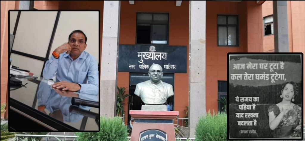 लोकमत सत्याग्रह , अंशुल मित्तल, ग्वालियरग्वालियर नगर निगम में एक अधिकारी जोकि इमेज तो एंग्री मैन की रखते हैं लेकिन असलियत यह है कि एंग्री मैन की इमेज इसलिए बना रखी है ताकि कोई सवाल ना पूछ सके। उदाहरण के तौर पर नगर निगम का संपत्तिकर घोटाला, जिसमें संपत्तिकर अधिकारियों द्वारा अपने अधिकारों का दुरुपयोग करते हुए सरकारी जमीनों की संपत्ति कर आईडी अन्य निजी व्यक्तियों के नाम से बनाकर शासन को करोड़ों का चूना लगाया, उपायुक्त को उस घोटाले की संपूर्ण जानकारी होते हुए भी, मामले को तकरीबन 6 महीने से दबाकर रखा गया और दोषियों को दिया गया संरक्षण। एक वीडियो स्टिंग के अनुसार संपत्ति कर घोटाले की बिंदुवार और संपूर्ण जानकारी उपायुक्त ए पी एस भदौरिया को 6 महीने पहले ही दी जा चुकी थी, और उपायुक्त ने माना था कि यह एक बड़ा घोटाला है जिसमें दोषियों पर तुरंत कार्यवाही होनी चाहिए। लेकिन मामले की लिखित शिकायत होने और निगम आयुक्त द्वारा उपायुक्त ए पी एस भदौरिया को जांच दिए जाने के बावजूद किसी भी दोषी पर कोई कार्यवाही नहीं की गई। आपको बता दें कि इस घोटाले के कुछ सूत्रधार सेवानिवृत्त होकर गंगा नहा चुके हैं और बाकी के तेजी से रिटायरमेंट की तरफ बढ़ रहे हैं। लेकिन इस संगीन मामले पर निगम के जिम्मेदारों ने कोई सुध नहीं ली, जिसे फर्जीवाड़ा किए जाने की मौन स्वीकृति समझना गलत नहीं होगा!