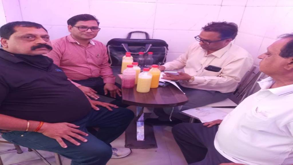 खाद्य सुरक्षा विभाग की टीम ने बांके बिहारी जूस सेंटर स्टेशन बजरिया का निरीक्षण किया गया जहां जूस सेंटर के इन्चार्ज राकेश आर्य द्वारा संतरा, मौसमी, पानइएप्पल, मैंगो के जूस एवं शेक तैयार किये जा रहे थे। मौके से आरेंज जूस, पाइनएप्पल जूस एवं मैंगों शेक के नमूने लिये। इसी के पास स्थित लवली जूस सेन्टर का भी निरीक्षण किया जहां निरीक्षण उपरांत खाद्य सुरक्षा अधिकारी राजेश गुप्ता ने मौसमी जूस, अनार जूस एवं मैंगो शेक के नमूने लिये। खाद्य सुरक्षा विभाग की टीम ने नई सडक स्थित राकेश जूस सेन्टर का निरीक्षण किया जहां से खाद्य सुरक्षा अधिकारी बृजेश शिरोमणि ने मौसमी जूस का नमूना लिया। इसके अलावा चलित खाद्य प्रयोगशाला से महाराज बाडा स्थित गांधी मार्केट पर अभिषेक जूस सेन्टर, बालाजी जूस सेन्टर , नरेश सोडा शिंकजी मोर बाजार, रमेश जूस सेन्टर, एवं सूरी सोडा सेन्टर और केजीएन राक्सी टाकीज से विभिन्न फलों के जूस एवं सोडा शिंकजी के मौके पर जांच की गयी जिसमें अभिषेक जूस सेन्टर पर मैंगों शेक एवं अनार जूस में शुगर सीरप पाये जाने पर जूस मालिक नरेश कुशवाहा ने यह बताया कि ग्राहक की मांंग पर जूस को मीठा करने के लिये शुगर डाली जाती है।