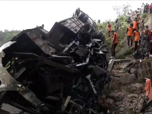 लोकमतसत्याग्रह/जम्मू में कटरा से करीब 15 किमी दूर झज्जर कोटली के पास मंगलवार सुबह एक बस पुल से नीचे गिर गई। इसमें 10 लोगों की मौत हो गई और 57 घायल हैं। मौके पर स्थानीय लोग, CRPF और SDRF ने रेस्क्यू चलाया और घायलों को अस्पताल भेजा।