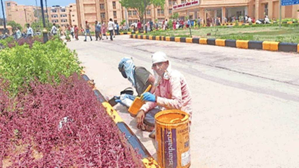 हजार बिस्तर अस्पताल में सड़कों के आसपास बने डिवाइडर की रंगाई-पुताई की जा रही है। जिन स्थानों पर डिवाइडर टूट गए थे उन्हें तैयार किया जा रहा है। दीवारों पर गुटखा, पान, तंबाखू के दाग मिटाए जा रहे हैं। अस्पताल की सफाई व्यवस्था के लिए 195 सफाई कर्मचारी आउट सोर्स की मदद से मिल चुके हैं। 63 सुरक्षा गार्ड तैनात किए जा चुके हैं।