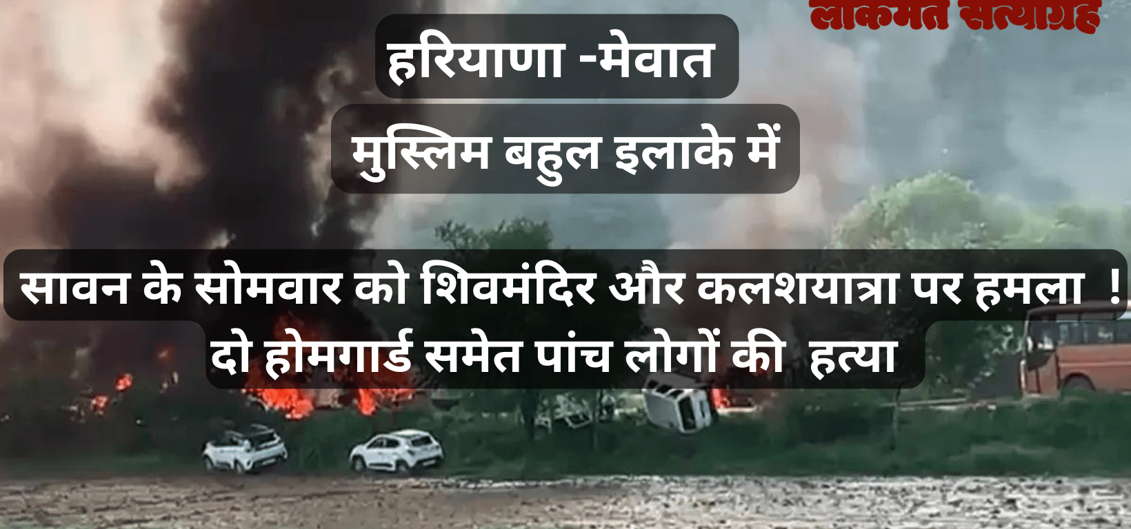 लोकमत सत्याग्रह/हरियाणा मेवात ,सावन माह के पवित्र सोमवार के दिन हरियाणा के प्राचीन शिव मंदिर पर स्थानीय मुसलमानो ने किया हमला , दो होम गॉर्ड समेत कई की मौत , तीन को जिन्दा जलाये जाने की खबर ।