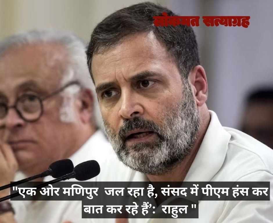 कांग्रेस के पूर्व अध्यक्ष राहुल गांधी (Rahul Gandhi) ने शुक्रवार को आरोप लगाया कि जब मणिपुर (Manipur) में आग लगी है तो ऐसे समय प्रधानमंत्री नरेंद्र मोदी द्वारा संसद के भीतर ‘हंसी-मजाक’ करना अशोभनीय है तथा आज तक किसी प्रधानमंत्री ने ऐसा नहीं किया।