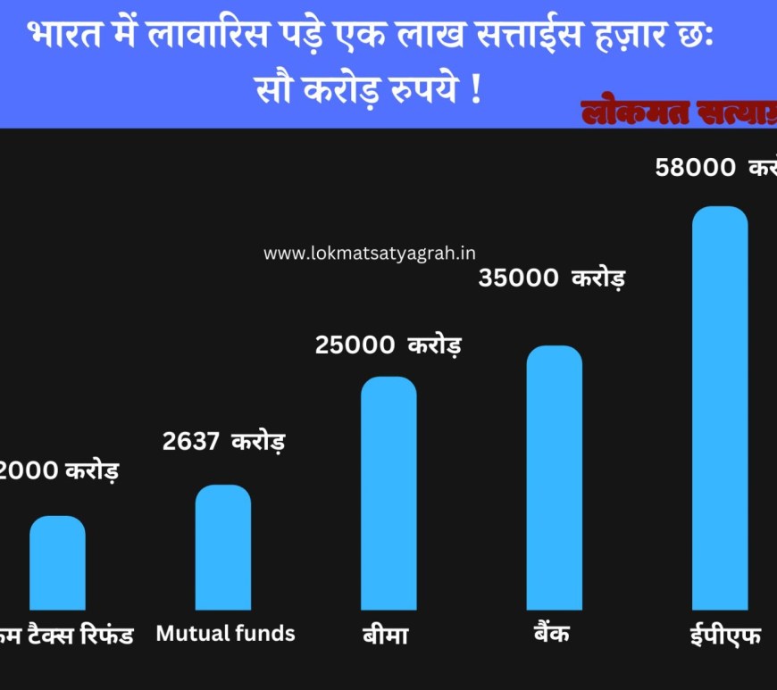 लोकमतसत्याग्रह/क्या आप जानते हैं कि ऐसी संभावना है कि आपके दादा-दादी या परिवार में किसी और के पास कोई बैंक खाता या कोई पॉलिसी हो जिसके बारे में आपको आज तक पता न हो और वह पैसा दशकों से लावारिस पड़ा हो? जी हाँ, ऐसा हो सकता है!! क्या आप विश्वास कर सकते हैं कि भारत में बैंकों, ईपीएफ, पीपीएफ, म्यूचुअल फंड, एलआईसी और कई … Continue reading भारत में लावारिस पड़े एक लाख सत्ताईस हज़ार छःसौ करोड़ रुपये किस खाते में हैं !