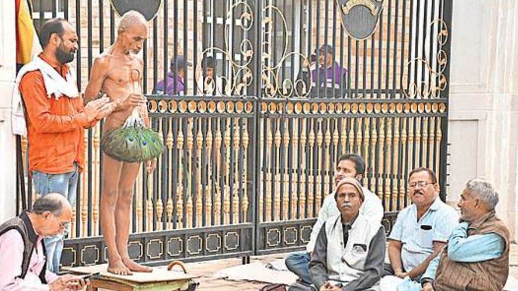 लोकमतसत्याग्रह/जैन मुनि आचार्य विवुद्ध सागर महाराज अपने कुछ शिष्यों के साथ किले पर स्थित सिंधिया स्कूल के गेट पर खुले आसमान तले कड़ाके की ठंड में बैठ गए हैं। जैन मुनि त्रिशला माता मंदिर पर चार्तुमास कर रहे थे। चार्तुमास की समाप्ति पर सिंधिया स्कूल के ग्राउंड में कुटिया महल के दरवाजे पर विराजित महावीर स्वामी के दर्शन करने के लिए गए। सिंधिया स्कूल के प्रबंधन ने दर्शनों के लिए प्रवेश की इजाजत नहीं दी। उसके बाद जैन मुनि गेट पर बैठ गए। जैन मुनि का कहना है कि भगवान महावीर के दर्शन करते उठूंगा।