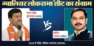 भाजपा ने ग्वालियर सीट से भारत सिंह कुशवाह को उम्मीदवार बनाया है, जिन्हें विधानसभा चुनाव में हार का सामना करना पड़ा था। प्रधानमंत्री नरेंद्र मोदी के नाम पर चुनाव लड़े कुशवाहा के सामने कांग्रेस ने विधायक प्रवीण पाठक के तौर पर कड़ी चुनौती पेश की है।