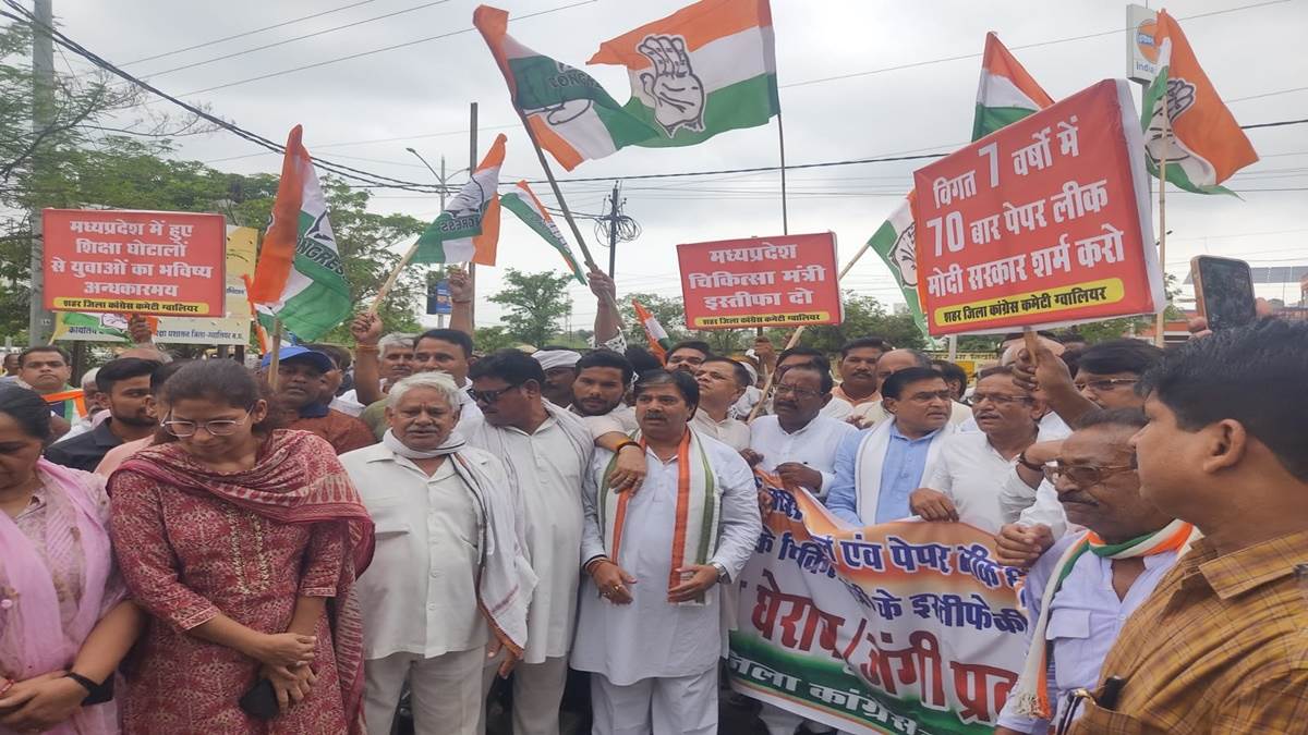 प्रदेश कांग्रेस से आये निर्देश पर कांग्रेसी सुबह अलकापुरी चौराहे पर जमा हुए। यहां से कांग्रेस ने पटवारी, नर्सिंग घोटाले सहित अन्य शिक्षा घोटालों से जुड़ी तख्तियांं हाथों में लेकर पैदल मार्च किया।प्रदर्शनकारियों को जिलाधीश कार्यालय के प्रवेश द्वार पर रोक दिया गया। कांग्रेसियों ने प्रदेश के शिक्षा मंत्री का इस्तीफा मांगते हुए नारेबाजी की। प्रदर्शन में पूर्व मंत्री लाखन सिंह, वरिष्ठ कांग्रेस नेता सुनील शर्मा, अमर सिंह माहौर, मीनू परिहार, राजेंद्र नाती,वीर सिंह तोमर, महाराज सिंह पटेल, अवधेश कौरव सहित काफी संख्या में कांग्रेसी मौूजद थे