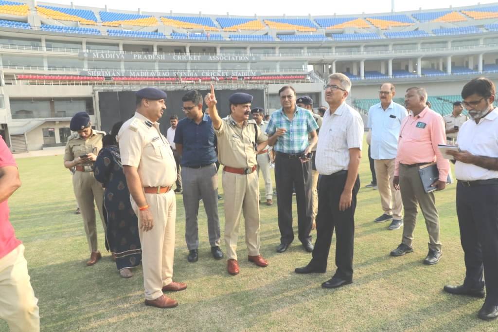 ग्वालियर। 6 अक्टूबर को भारत और बांग्लादेश के बीच होने वाले अंतरराष्ट्रीय 20 – 20 क्रिकेट मैच की तैयारियों का जायजा लेने संभाग आयुक्त मनोज खत्री एवं पुलिस महानिरीक्षक अरविंद सक्सेना ने पुलिस और प्रशासन के साथ ही जीडीसीए के पदाधिकारियों के साथ नवनिर्मित श्रीमंत माधवराव सिंधिया अंतरराष्ट्रीय क्रिकेट स्टेडियम पहुंचे और स्टेडियम का जायजा लिया। स्टेडियम का निरीक्षण कर संभाग आयुक्त श्री खत्री ने निर्देश दिए कि जिला प्रशासन, पुलिस एवं एमपीसीए के अधिकारी आपसी समन्वय बनाकर व्यवस्थाओं को इस प्रकार से अंजाम दें कि दर्शक सहजता व सुविधाजनक तरीके से स्टेडियम में प्रवेश कर सकें। साथ ही मैच समाप्ति के बाद जल्द से जल्द पार्किंग स्थल से अपने वाहनों को लेकर घर के लिये रवाना हो सकें।