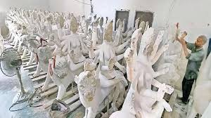 मूर्तियों का श्रृंगार कर रहे कलाकार