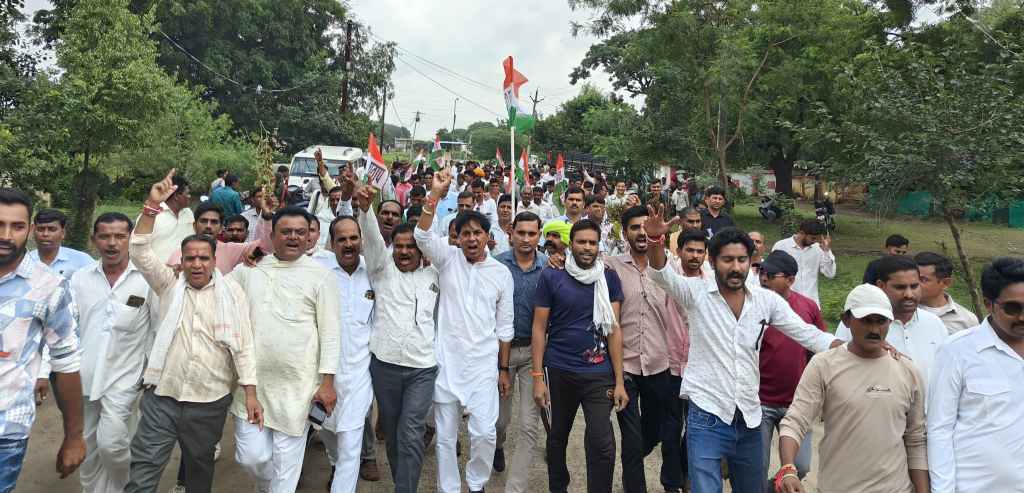 विगत कुछ दिनो से लगातार हो रही अत्यधिक वर्षा से सरदारपुर विधानसभा के समस्त ग्रामो मे सोयाबीन की फसल नष्ट हो गई है जिसका शीघ्र ही सर्वे कर फसल बीमा एवं मुआवजा प्रदान करने के लिए विधायक प्रताप ग्रेवाल के नैतृत्व मे ब्लाॅक कांग्रेस कमेटी सरदारपुर, दसई, अमझेरा राजोद द्वारा,संयुक्त रूप से सोमवार को विधायक कार्यालय से सरदारपुर एसडीएम कार्यालय तक पैदल मार्च निकालकर प्रदेश के मुख्यमंत्री के नाम पर ज्ञापन सौंपा गया।