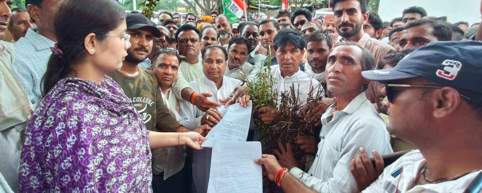 अत्यधिक वर्षा की वजह से सोयाबीन की उत्पादन क्षमता कम हुई है किसानो द्वारा बाजार से अधिक मूल्य पर सोयाबीन का बीज लेकर बुवाई की थी लेकिन प्रकृति की मार से किसान की आर्थिक स्थिती दयनीय हो गई है। हर वर्ष सोयाबीन की फसलो का फसल बीमा कंपनियो द्वारा बीमा किया जाता है लेकिन नियमो मे जटिलता होने के कारण गरीब किसानो को बीमा का लाभ नही मिल पाता है। फसलो का सर्वे कराकर पटवारी द्वारा अनावरी निकालकर बीमा कंपनी को सूचित करे जिससे किसानो को फसल बीमा का लाभ मिल सके। ज्ञापन का वाचन भीमालाल चोधरी द्वारा किया गया,