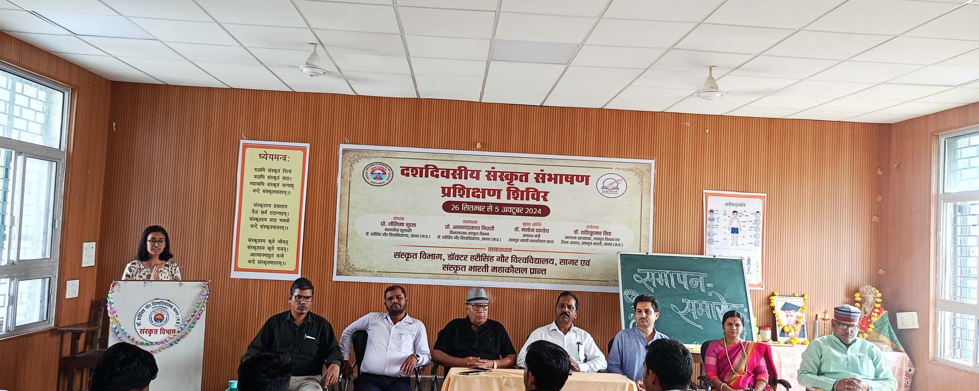 सागर./डॉ. हरीसिंह गौर विश्वविद्यालय के संस्कृत विभाग एवं संस्कृत भारती महाकौशल प्रान्त के संयुक्त तत्वावधान में दशदिवसीय संस्कृत संभाषण प्रशिक्षण शिविर का आयोजन संस्कृत विभाग के संस्कृत संभाषण कक्ष में किया गया। दिनांक 26 सितम्बर 2024 शिविर का उद्घाटन हुआ।
