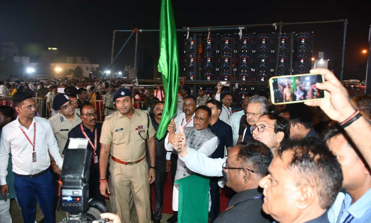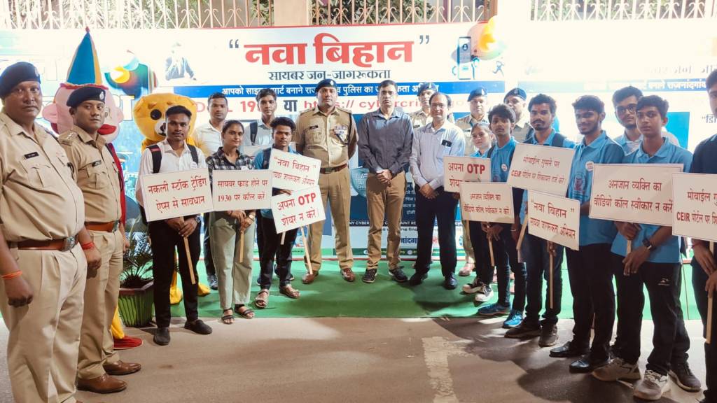 पुलिस अधीक्षक राजनांदगांव श्री मोहित गर्ग के नेतृत्व में “नवा बिहान“ के तहत दिनांक 15.10.2024 को सायबर एवं एक युद्ध नशे के विरूद्ध जन-जागरूकता अभियान कार्यक्रम हुआ। उक्त कार्यक्रम के मुख्य अतिथि के रूप में छ0ग0 के माननीय श्री मुख्यमंत्री श्री विष्णुदेव साय एवं माननीय छ0ग0 स्पीकर महोदय श्री डॉ0 रमन सिंह द्वारा संयुक्त रूप से म्यूनिसिपल स्कूल मैदान में सायबर एवं एक युद्ध नशे के विरूद्ध रथ को हरी झंडी दिखाकर रवाना किया गया। जो जिले के शहर एवं ग्रामिण क्षेत्रों के हाट-बजार व सर्वजनकि जगहों पर जाकार लोगों को जागरूक करेंगे।