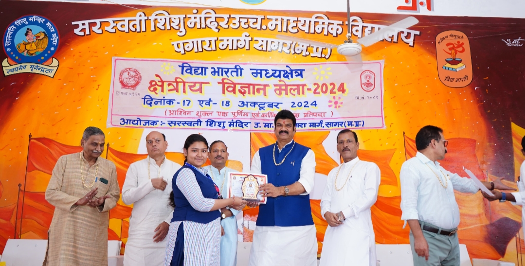 सागर सरस्वती शिशु मंदिर ज्ञान तथा संस्कारों की पाठशाला है जहां पर बच्चों को ज्ञान तो मिलता ही है साथ ही वह संस्कार भी मिलते हैं जिन संस्कारों के कारण हमारा भारत पूरे विश्व में जाना जाता है इस सरस्वती शिशु मंदिर में आयोजित विज्ञान मेला ज्ञान और विज्ञान का संगम है यह बात खाद्य नागरिक आपूर्ति एवं उपभोक्ता संरक्षण मंत्री गोविंद सिंह राजपूत ने सरस्वती शिशु मंदिर उच्च माध्यमिक विद्यालय पगारा में विद्या भारती मध्य क्षेत्र के क्षेत्रीय विज्ञान मेला 2024 के आयोजन में कही। अपने संबोधन के दौरान कही मंत्री श्री राजपूत ने कहा कि हमारे बच्चों में प्रतिभा की कमी नहीं है बस उन्हें एक मंच की आवश्यकता है और वह मंच विज्ञान मेला में उन्हें उपलब्ध हुआ हैं। इन बच्चों में कई बड़े वैज्ञानिक बैठे हुए हैं जो आगे चलकर अपने माता-पिता क्षेत्र तथा देश का नाम पूरे विश्व में रोशन करेंगे सरस्वती शिशु मंदिर के बच्चों में शिक्षा और संस्कार इस तरह के होते हैं कि वह जहां भी रहे उनकी अलग पहचान रहती है।