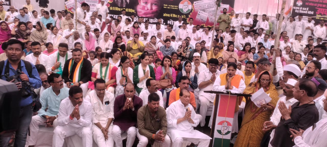 सागर /प्रदेश में बेटियों और महिलाओं के साथ दुष्कर्म और अपराध की बढ़ती घटनाओं व प्रदेश को ड्रग माफिया का अड्डा बनाए जाने के खिलाफ मध्यप्रदेश कांग्रेस कमेटी द्वारा प्रांत व्यापी उपवास कार्यक्रम का आयोजन रोशनपुरा चौराहे पर किया जा रहा है।