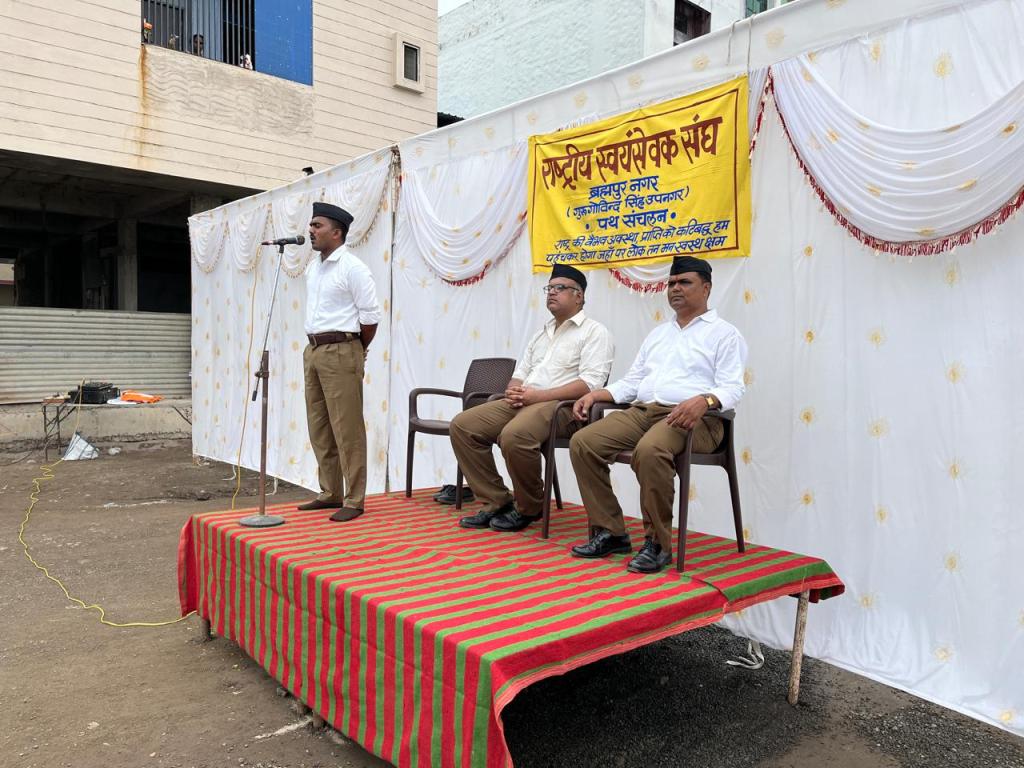 बुरहानपुर- रविवार को राष्ट्रीय स्वंय सेवक संघ द्वारा गुरू गोविन्द उप नगर में पथ-संचलन का आयोजन किया गया। पथ संचलन की शुरुआत उप नगर की छे बस्ती शाखा मैदान परिसर से हुई। इसके स्वयंसेवकों का छे बस्तीयो का एकत्रीकरण झुले लाल बस्ती (सिंधी बस्ती) प्रातः 9:30 बजे हुआ|