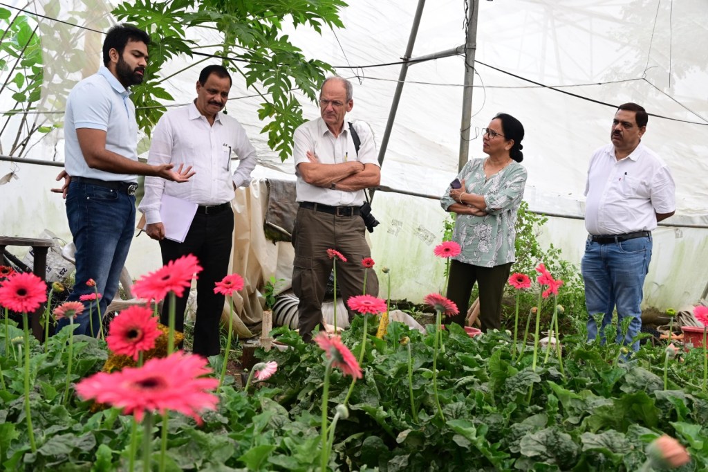 राजनांदगांव इंडो-डच सहयोग से सेंटर ऑफ एक्सीलेंस की स्थापना नया रायपुर में किया जाना है। इसी कड़ी में प्रस्तावित सेंटर ऑफ एक्सीलेंस के मूल्यांकन के लिए नीदरलैंड के विशेषज्ञ श्री जैइप वॉन बालेन एवं लाइजनिंग ऑफिसर इन्डो-डच सेंटर ऑफ एक्सीलेन्स डॉ. तरन्नुम कायद भाई एमवसी द्वारा राजनांदगांव जिले का भ्रमण किया गया। भ्रमण के दौरान सर्वप्रथम ग्राम देवादा के कृषक नीवन, मनोज, संगीता के यहां पर पॉलीहाऊस के भीतर जरबेरा खेती का अवलोकन किया गया एवं कृषकों से चर्चा की गई। डोंगरगढ़ विकासखंड के ग्राम रूवातला के कृषक समूहों द्वारा पालीहाऊस के भीतर शिमला मिर्च का अवलोकन किया। कृषक द्वारा बताई गई समस्या का समाधान किया गया। कृषकों से नीदरलैड से आए डच विशेषज्ञों ने विस्तृत चर्चा की। डच विशेषज्ञों ने फसल को देखकर खुशी जाहिर की तथा किसी भी प्रकार की समस्या होने पर अपना नम्बर देते हुए संपर्क करने कहा। इस दौरान संचालनालय रायपुर के उप संचालक श्री नीरज साहा, सहायक संचालक उद्यान श्री राजेश शर्मा एवं संबंधित विकासखंड के प्रभारी, कृषि अधिकारी एवं कृषकगण उपस्थित रहे। इंडो-डच विशेषज्ञों ने फसल देखकर खुशी जाहिर की
