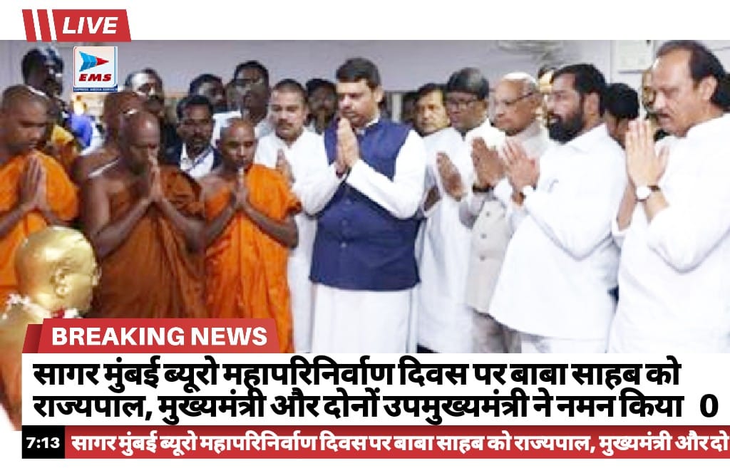 लोकमत सत्याग्रह / नीरज वैद्यराज /सागर ,शुक्रवार 6 दिसंबर को भारत रत्न डॉ. बाबा साहब अंबेडकर के 68वां महापरिनिर्वाण दिवस पर महाराष्ट्र के कोने-कोने से भीम अनुयायी बाबा साहब को श्रद्धा सुमन अर्पित करने मुंबई के दादर स्थित चैत्यभूमि पहुंचे। वहीं, राज्य के नवनिर्वाचित मुख्यमंत्री देवेन्द्र फड़णवीस, उपमुख्यमंत्री एकनाथ शिंदे और उपमुख्यमंत्री अजित पवार ने भी बाबा साहेब को श्रद्धा सुमन अर्पित करने चैत्यभूमि पहुंचे। इस मौके पर राज्य के राज्यपाल सी. पी. राधाकृष्णन भी उपस्थित थे। नई सरकार के शपथ ग्रहण समारोह के बाद यह पहला सरकारी कार्यक्रम शुक्रवार को चैत्यभूमि में आयोजित किया गया। राज्य के नए मुख्यमंत्री देवेन्द्र फड़णवीस, उपमुख्यमंत्री एकनाथ शिंदे और उपमुख्यमंत्री अजीत पवार सुबह 8 बजे चैत्यभूमि पहुंचे। इस मौके पर उन्होंने वहां की व्यवस्था का जायजा लिया। इसके बाद चैत्यभूमि में डॉ. बाबा साहेब अम्बेडकर की स्मृति को नमन किया। देवेन्द्र फड़णवीस के मुख्यमंत्री बनने के बाद 24 घंटे के अंदर होने वाला यह पहला बड़ा सरकारी आयोजन था। इसलिए सबकी नजर इस कार्यक्रम पर था। श्रद्धा सुमन अर्पित करने के बाद मुख्यमंत्री देवेन्द्र फड़णवीस, उपमुख्यमंत्री एकनाथ शिंदे और उपमुख्यमंत्री अजित पवार के साथ राज्यपाल सी. पी. राधाकृष्णन ने भाषण दिया और डॉ.बाबा साहेब अम्बेडकर की स्मृतियों को प्रकाश में लाया गया