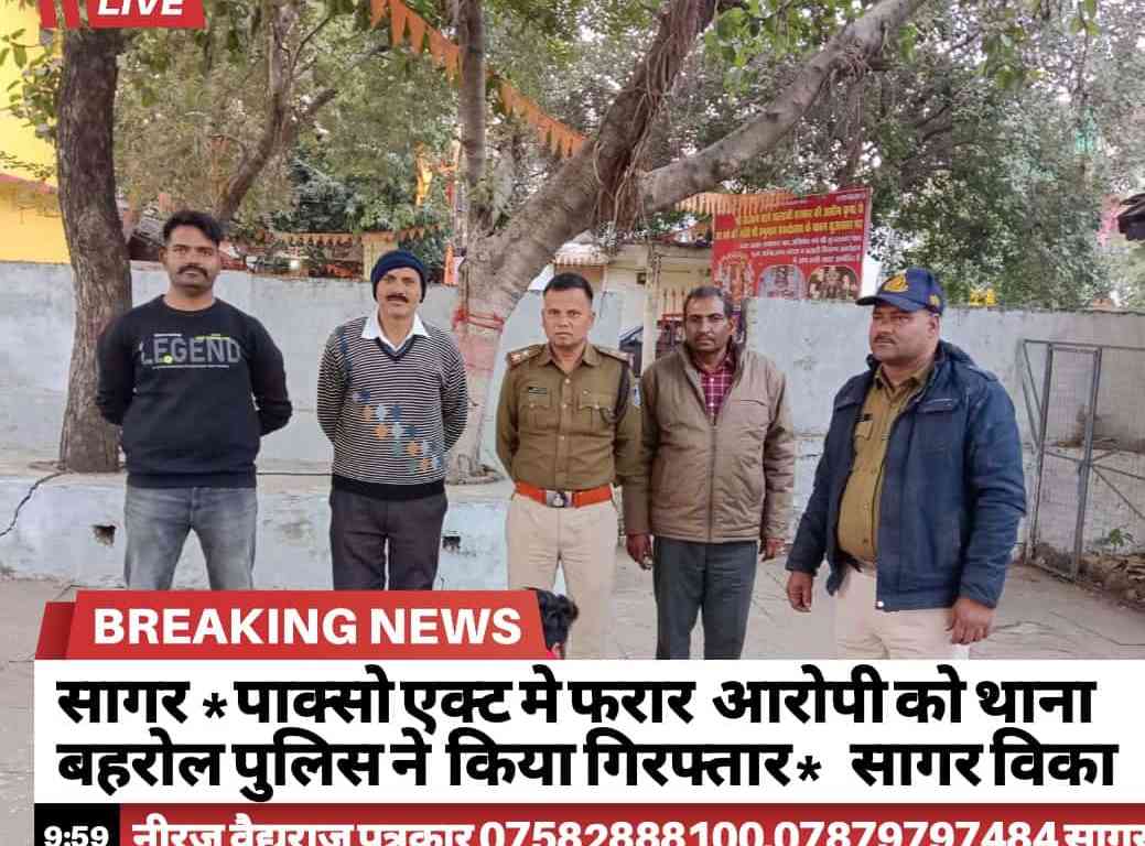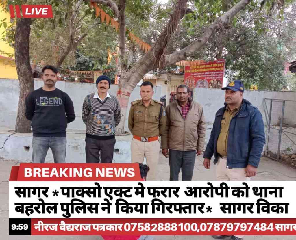 लोकमत सत्याग्रह / नीरज वैद्यराज /सागर, सागर विकास कुमार शाहवाल पुलिस अधीक्षक सागर द्वारा समस्त आरोपियों की गिरफ्तारी,अपराध पर अंकुश लगाये जाने एवं रोकथाम हेतु सभी थाना प्रभारियों को निर्देशित किया गया है पुलिस अधीक्षक के निर्देशानुसार थाना क्षेत्रान्तर्गत घटनाओ की रोकथाम एव फरार आरोपीयो की गिरफ्तारी हेतु डाँ संजीव कुमार ऊईके अतिरिक्त पुलिस अधीक्षक सागर एवं शिखा सोनी एस.डी.ओ.पी महोदय बंडा के मार्ग दर्शन मे थाना क्षेत्रान्तर्गत थाना स्तर पर टीम गठित कर उक्त गंभीर अपराध के फरार आरोपियों की धर पकड कार्यवाही हेतु क्षेत्र मे लगातार प्रेट्रोलिंग की गई एवं मुखबिर तैनात किये गये इसी क्रम में थाना बहरोल के