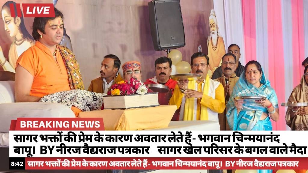 लोकमत सत्याग्रह / नीरज वैद्यराज / सागर खेल परिसर के बगल वाले मैदान में चल रही श्री राम कथा के तीसरे दिन में कथा की क्रम को आगे बढ़ते हुए बापूजी ने कहा कि भगवान शिव ने माता सती के झूठ बोलने पर उनका परित्याग किया बापूजी ने कहा की पति-पत्नी का रिश्ता दूध और पानी की तरह होता है लेकिन जब उसमें कपट रूपी खटाई पड़ जाती है तो दूध अलग हो जाता है और पानी अलग हो जाता है ऐसे ही पति-पत्नी के रिश्ते में कभी कपट नहीं होना चाहिए बापूजी ने कहा की पति-पत्नी एक दूसरे का सम्मान प्रेम करने के साथ-साथ एक दूसरे से कभी कुछ छुपाये नहीं और एक दूसरे के प्रति कभी कपट ना रखें