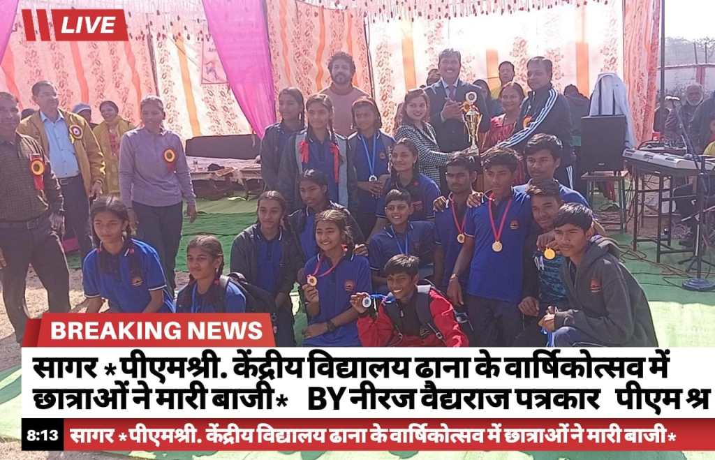 लोकमत सत्याग्रह / नीरज वैद्यराज /सागर,. पीएम श्री केंद्रीय विद्यालय ढाना में वार्षिक खेल दिवस का आयोजन गुरुवार को किया गया। इस अवसर पर मुख्य अतिथि के रूप में डॉ मोनिका हार्डीकर खेल अधिकारी स्वशासी शासकीय कन्या स्नातकोत्तर महाविद्यालय सागर रही।उन्होंने विद्यार्थियों का उत्साह वर्धन करते हुए कहा कि खेलों का जीवन के विकास में बहुत बड़ा योगदान है इससे हमारे अंदर टीम भावना का विकास होता है। सहयोग की भावना विकसित होती है तथा जीवन कौशल पनपता है।इस अवसर पर विद्यालय के प्राचार्य विनोद कुमार ने मुख्य अतिथि का स्वागत करते हुए विद्यार्थियों को खेलों की महत्ता खेलों के माध्यम से अनुशासन और खेलों में रोजगार तथा करियर की संभावनाओं के विकास पर प्रेरणात्मक उद्बोधन दिया।विशिष्ट अतिथि के रूप में रोहन सिंह बुसु चैंपियन तथा अंजलि सिंह विशिष्ट अतिथि के रूप में रहे। उन्होंने भी खेलों की महत्ता पर प्रकाश डाला और विद्यार्थियों को खेलों के नियम बताएं,वार्षिकोत्सव पर नींबू रेस रिले रेस, 100 एवं 200 मीटर की रेस तथा योग के विभिन्न करतबो में छात्रों का उत्साह देखते ही बना, कार्यक्रम के अंत मे राष्ट्रीय गान के साथ ही बच्चो ने अनुशाशन में रहने और अपने आसपास सफाई करने की शपथ ली।