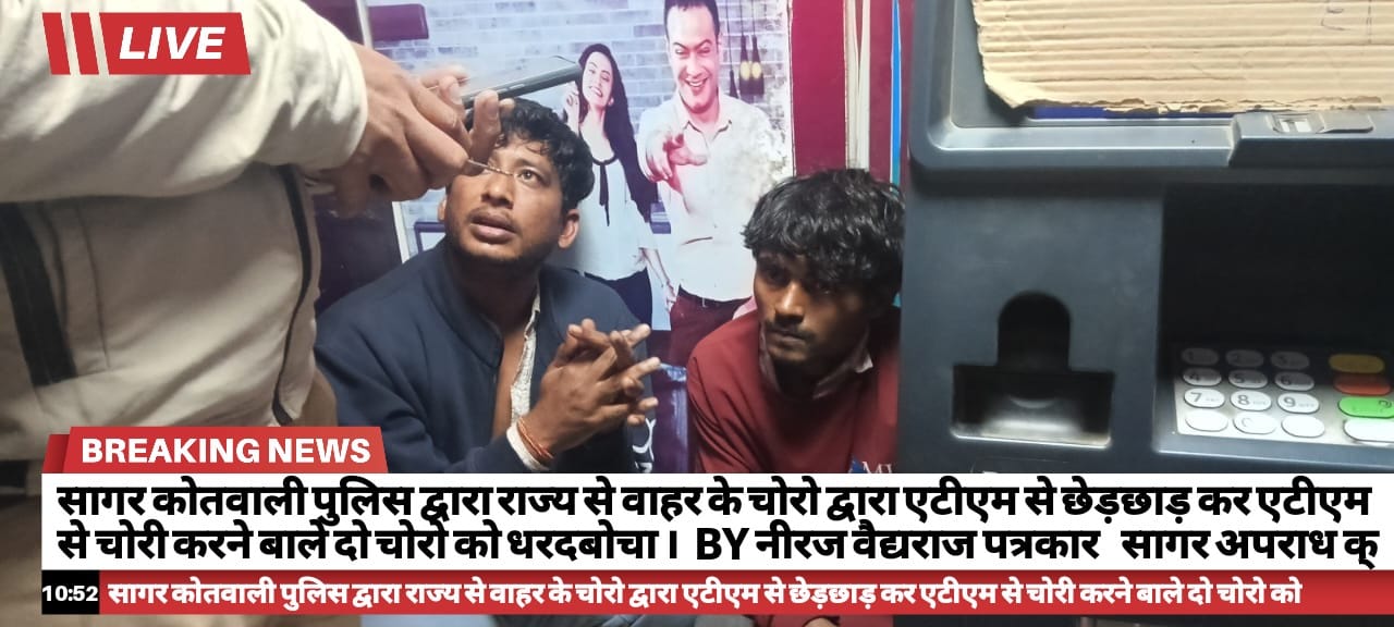 लोकमत सत्याग्रह / नीरज वैद्यराज / सागर अपराध क्रमांक धारा:- 469/2024 धारा 305 (a) बीएनएस के तहत आरोपी राजकुमार उर्फ राजा पिता रणवत (सासी) नि.l राजथल 70, जिला हिसार हरियाणा 125039 और दूसरे आरोपी अभिषेक पिता जयभगवान नायक उम्र 21 साल नि. बालाजी नगर उदयपुर रोड थाना सिटी कैथल जिला कैथल हरियाणा को गिरफ्तार किया गया।उनसे की गई जप्ती माल इस प्रकार से हे एक हजार रूपया नकद,सनमाईका की पट्टी, पुरानी टूटा एटीएम. पेचकस,एक आई 10 कार क्र..एच.आर.26 ए.ई.8529 कीमती 5,00000 रूपया बताया गया हे।घटना का विवरण कुछ इस प्रकार से हे कि दिनांक 20.12.2024 को फरियादी फरियादिया दीक्षा खंगार पिता दिलीप कुमार खंगार उम्र 21 वर्ष नि.भैसा पहाड़ी थाना केंट जिला सागर ने रिपोर्ट लेख करायी कि दो व्यक्ति एटीएम के अन्दर आये और एटीएम मशीन से छेड़छाड़ कर एटीएम मशीन में सनमाईका की पट्टी लगाकर चोरी से पैसा निकाल लिये है। फरियादी की रिपोर्ट पर अप.क्र.469/2024 धारा-305(A) BNS कायम कर अनुसंधान में लिया गया। पुलिस अधीक्षक महोदय सागर विकाश कुमार शा