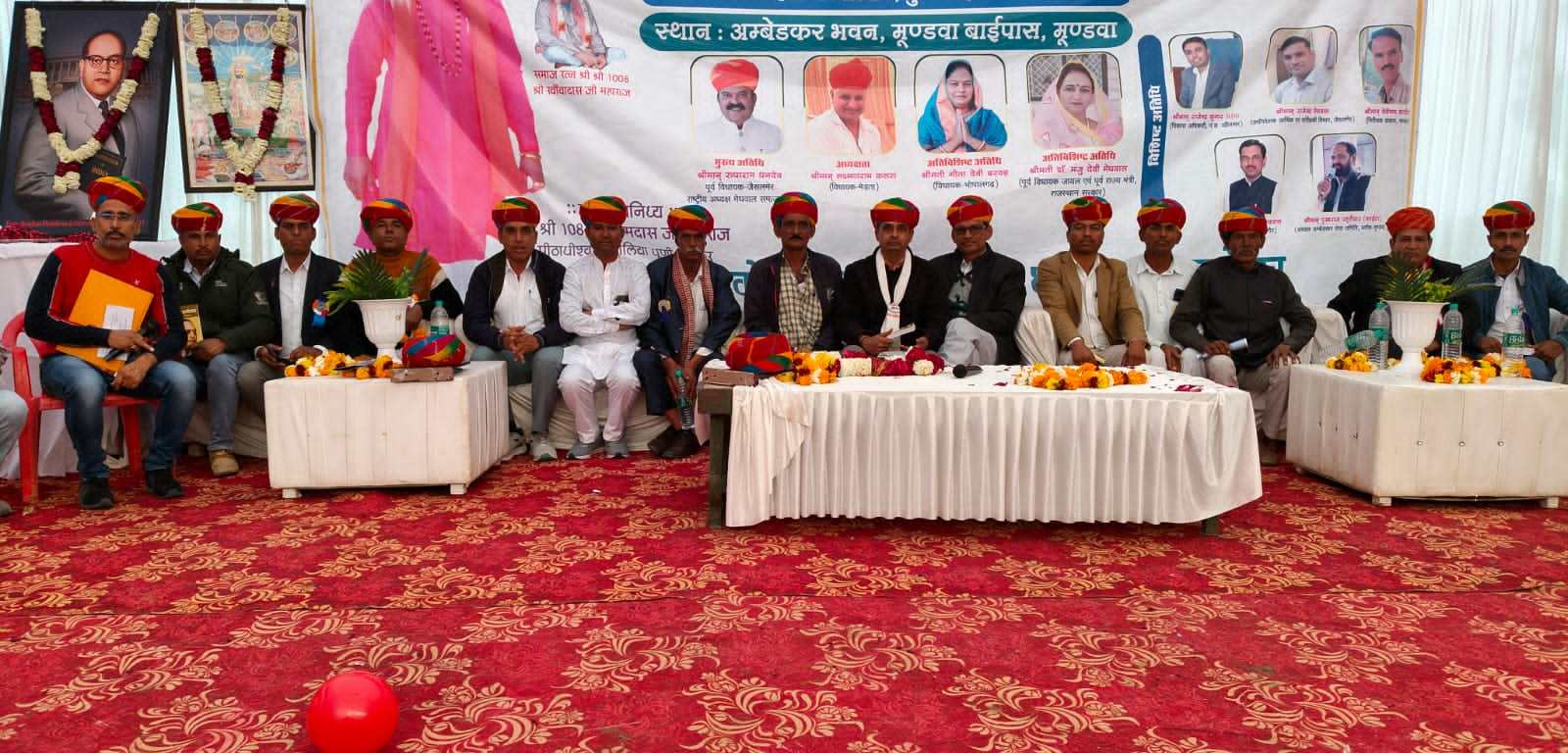 (अध्यक्ष-मेघवाल समाज विकास समिति नागौर)श्रीमानभंवराराममेघवाल (पूर्व सरपंच प्रतिनिधी व समाजसेवी) श्रीमान पुखराजफाइटर अध्यक्ष-डॉ अम्बेडकर सेवा समिति ब्लॉक मुड़वा श्रीमान भजनसिंह खुड़ीवाल (अध्यक्ष-अम्बेडकर वेल्फायर सोसाइटी नागौर) तथा मूंडवा शहर के चेयरमैन प्रतिनिधि श्रीमान साहब व समाज के प्रतिनिष्ठ गणमान्य अतिथिगण, सरपंचगण,सदस्यगण,जिला परिषद सदस्य,पूर्व सरपंचगण व समाज के युवाशिक्त प्रतिभाशाली ल छात्र छात्राऐ व मातृशक्ती आदि ने भाग लिया ,