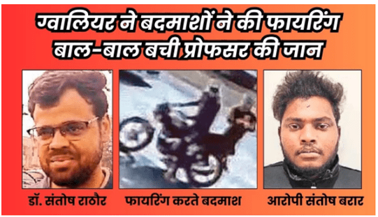 लोकमत सत्याग्रह : ग्वालियर में प्रोफेसर की कार पर फायरिंग करने वाले बदमाशों में से एक संतोष को पुलिस ने गिरफ्तार कर लिया है। यह बदमाश बाइक सवार था और उसने पहले प्रोफेसर की कार को टक्कर मारी थी, फिर चार गोलियां चलाईं। पुलिस ने सीसीटीवी फुटेज और बाइक के नंबर के आधार पर बदमाश को पकड़ा।
