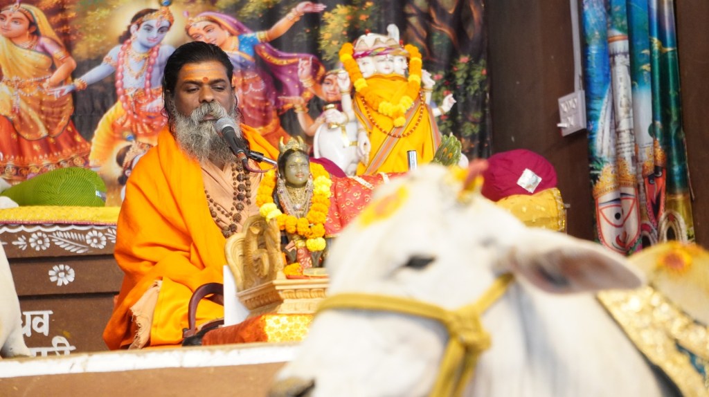 स्वामीजी ने आगे बताया कि इस संसार में मानवता को बचाने का एक मात्र माध्यम भगवती गोमाता ही है और गाय ही ऐसा माध्यम है जो सभी को एक मंच में ला सकती है और उसके लिए प्रत्येक सनातनी को गोमाता को दूध की जगह उसके गोमूत्र एवं गोबर जैसी अमूल्य निधि को पहचानने की जरूरत है क्योंकि भारत को सोने की चिड़िया कहलाने का मूल आधार गोमाता ही रहा है *