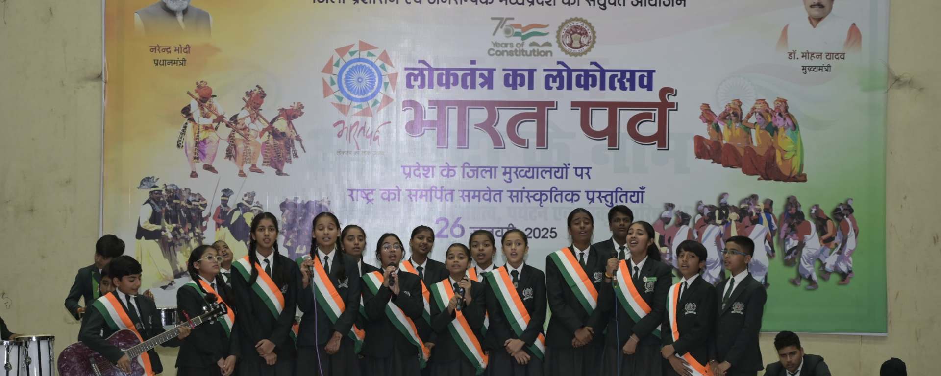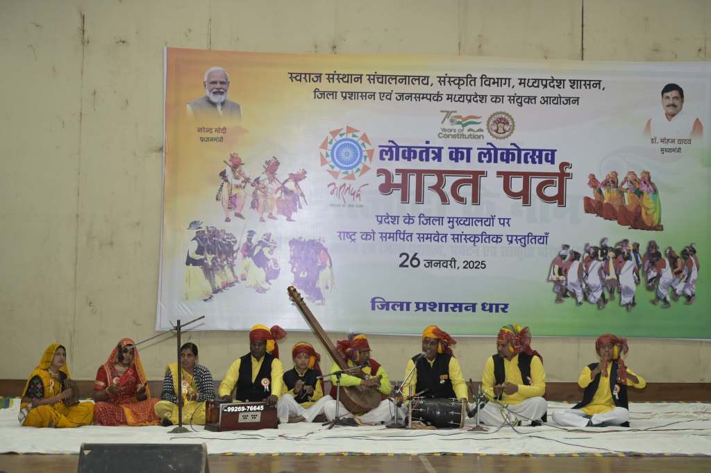 भारत पर्व में देशभक्ति की भावना,संयम का संदेश और सांस्कृतिक सौन्दर्य का अनोखा संगम देखने को मिला। गणतंत्र दिवस की संध्या पर पीएम एक्सीलेंस कालेज के सभागार में आयोजित इस पर्व ने लोगों को देश भक्ति, संयम और खुशी के रंग में रंग दिया।पर्व का मुख्य आकर्षण देशभक्ति गीतों की भावुक प्रस्तुति रही,वहीं कबीर गायन में प्रस्तुत “जरा हौले-हौले गाड़ी हांको” ने संयम, धैर्य और जीवन में संतुलन बनाए रखने का महत्व बताया। इसके साथ ही भगोरिया नृत्य में किसानों की खुशी और उल्लास झलका ।
