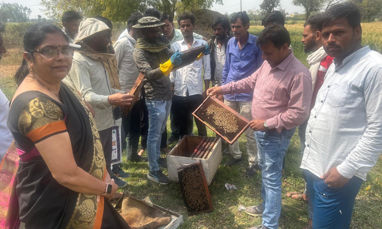 आगर-मालवा, 28 फरवरी/ मध्य प्रदेश खादी तथा ग्रामोद्योग बोर्ड द्वारा शुक्रवार को ग्राम चाचा खेड़ी में मधुमक्खी पालन का प्रशिक्षण कार्यक्रम आयोजित किया गया। जिसमें 28-30 किसानों ने भाग लिया।
